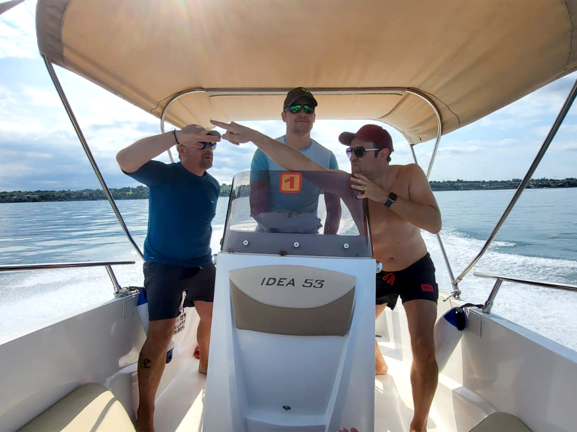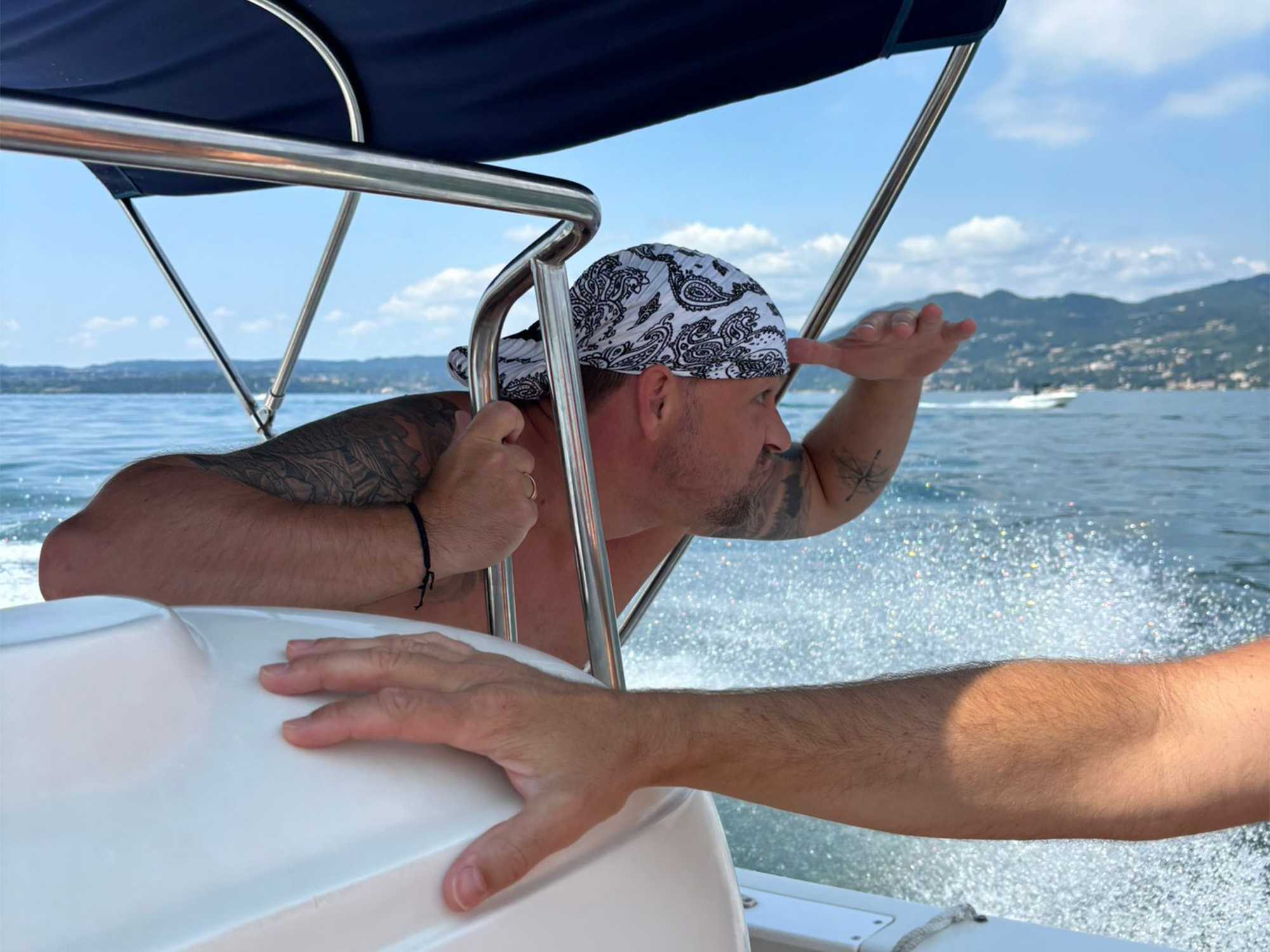 Der Samstag gehörte dem Gardasee – mit mehreren Motorbooten stachen wir in See und genossen das traumhafte Wetter. Während die einen entspannt durchs Wasser glitten, wachten unsere mutigen Elfer Max, Done und Präsi Stefan mit Argusaugen (und Sonnenbrille) über die Badegäste – selbstverständlich stilecht als (inoffizielle) Rettungsschwimmer im Einsatz. Auch Präsis dürfen mal Held sein. Währenddessen gönnte sich Thomas ein verdientes Nickerchen – Undercover-Einsatz braucht schließlich auch Pausen.