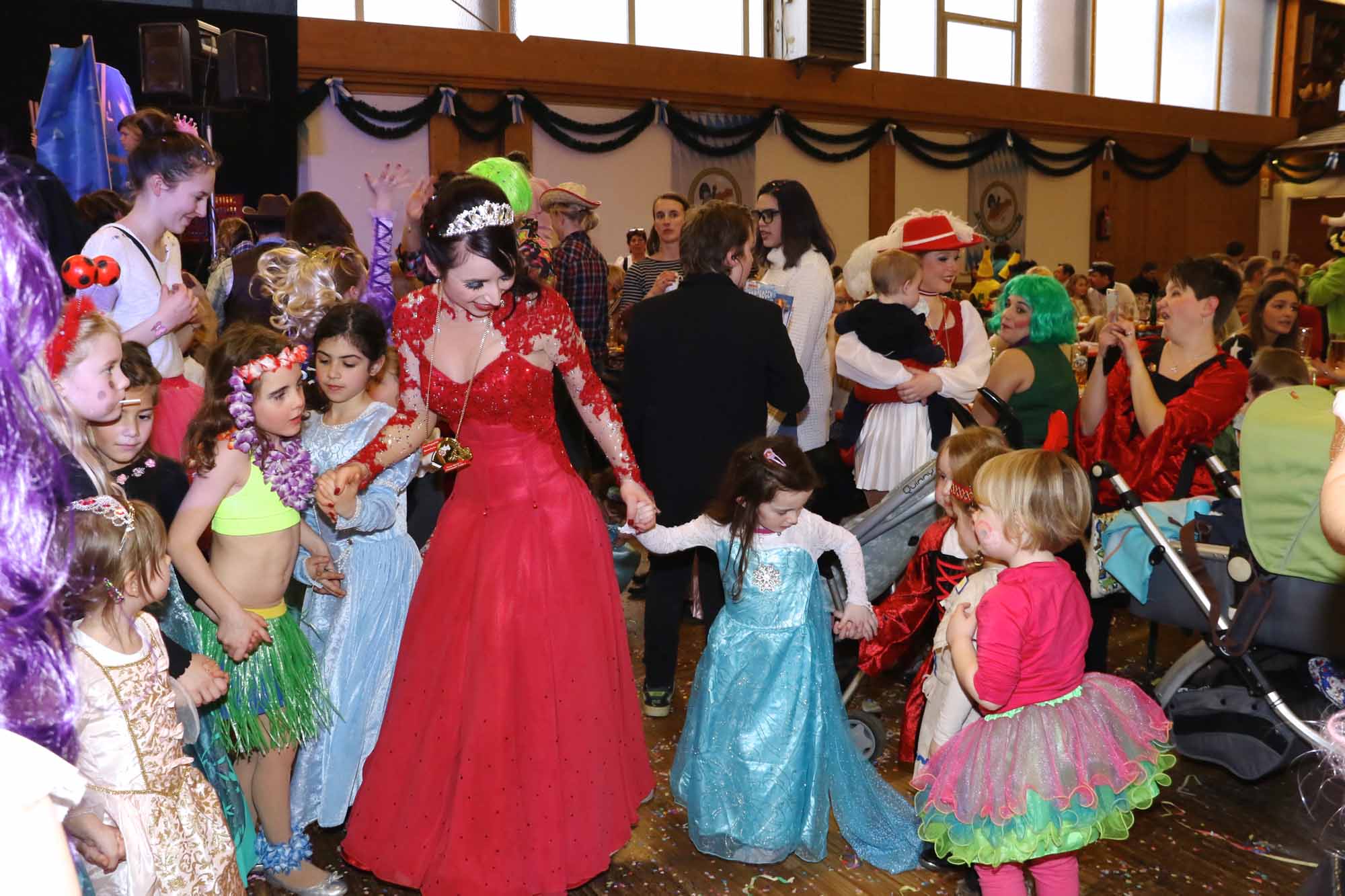 Lange Schlangen von faschingsbegeisterten Kindern und Erwachsenen bildeten sich schon eine Stunde vor Beginn vor der Inntalhalle als die Faschingsgilde Rosenheim im Wirtschaftlichen Verband e.V. zum legendären Kinderball einlud.